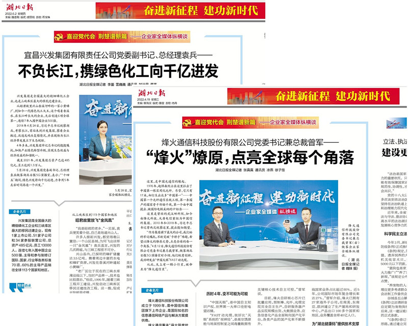 湖北日报“企业家全媒体纵横谈”栏目,聚焦湖北重点国企、产业链龙头企业和“专精特新”企业,共推出报端微(微信、微博)抖快“六合一”90组融媒产品,其中微信阅读量10万+爆款产品53篇,全网点击量达5.5亿。