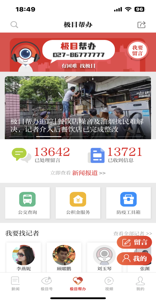 结合党员干部下基层察民情解民忧暖民心实践活动,极目新闻开设“极目帮办”全媒体专栏,通过新闻热线、微信小程序、客户端导航等窗口收集群众诉求建议,累计发稿85篇,协调解决群众身边的揪心事烦心事32件。荆楚网“荆楚问政”平台入驻各级单位2803家,“民生热线”团队获评2022年湖北省争做中国好网民工程“湖北好网民榜样”;蓝马甲反诈活动获“湖北省优秀网络公益项目”。