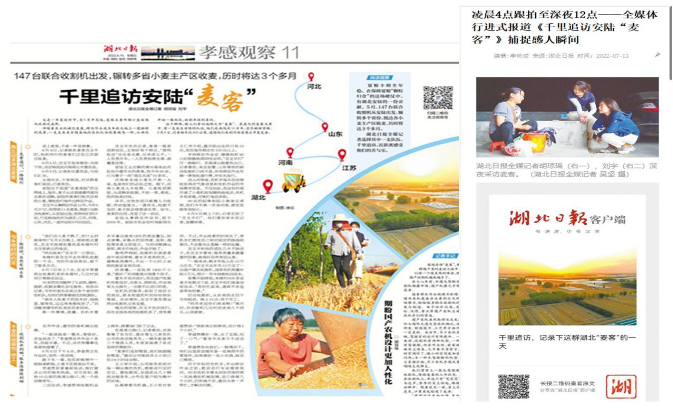 2022年夏收季节,湖北日报记者驱车近600公里一路追随“麦客”,零距离感受他们的酸甜苦辣,全媒体原创报道《千里追访安陆“麦客”》获得大量读者、网友点赞。