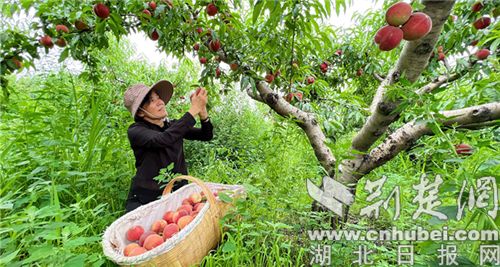 荆楚网(湖北日报网)讯(记者 安从斌 通讯员 胡敬彬)6月3日,在钟祥铜钱山农业风情园的水果种植基地内,漫山的梨树上挂满了“翠冠”梨,葡萄园内成串的葡萄涨势喜人,而在桃园里,游客们正在开心的采摘着又红又大的桃子。