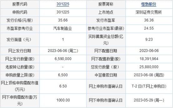 恒勃股份2023年6月5日发布的首次公开发行股票并在创业板上市发行公告显示,若本次发行成功,预计发行人募集资金总额为92,288.08万元,扣除预计发行费用10,146.64万元(不含增值税)后,预计募集资金净额为82,161.98万元。