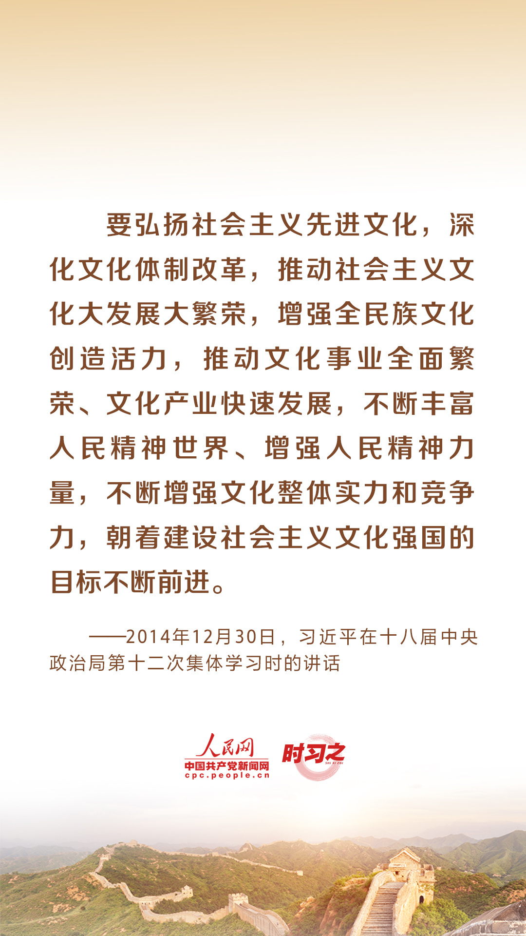 “理论自觉、文化自信,是一个民族进步的力量;价值先进、思想解放,是一个社会活力的来源。”党的十八大以来,习近平总书记就文化建设提出了一系列新理念新思想新战略,引领中华文化创造性转化、创新性发展。推动弘扬和发展社会主义先进文化,习近平多次作出重要阐释。