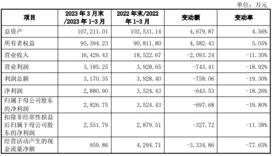 2023年1-3月,新莱福营业收入为16,429.43万元,同比下降11.30%;净利润为2,880.90万元,同比下降18.26%;归属于母公司股东的净利润2,826.75万元,同比下降19.80%;扣除非经常性损益后归属于母公司股东的净利润2,551.79万元,同比下降11.38%;经营活动产生的现金流量净额959.86万元,同比下降77.65%。