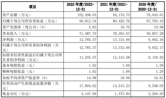 以上同期,公司净利润分别为9,662.36万元、13,333.66万元、12,785.57万元,归属于母公司所有者的净利润分别为9,652.17万元、13,333.66万元、12,785.57万元,扣除非经常性损益后归属于母公司所有者的净利润分别为9,139.92万元、12,415.68万元、11,205.57万元,经营活动产生的现金流量净额分别为9,548.05万元、14,515.23万元、17,894.62万元。