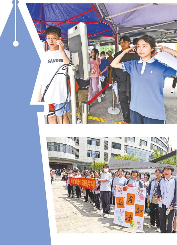 6月7日,2023年高考拉开帷幕。图为6月6日,武汉市第十七中学,考生通过人脸识别系统验证身份 楚天都市报极目新闻记者王永胜摄 6月6日,武汉市第七中学高一高二学生为参加高考的高三学长们呐喊加油 通讯员供图