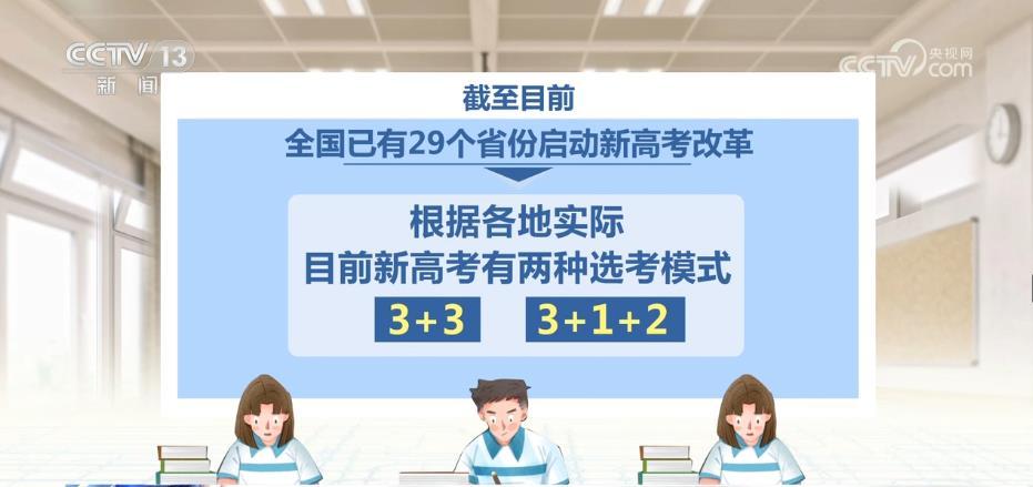 截至目前,全国已有29个省份启动新高考改革。根据各地实际,目前,新高考有“3+3”和“3+1+2”两种选考模式,按照从起始年级开始的原则,各地新高考方案的启动都是从当年秋季入学高一年级开始实施,三年后进行第一次新高考模式的考试和录取。