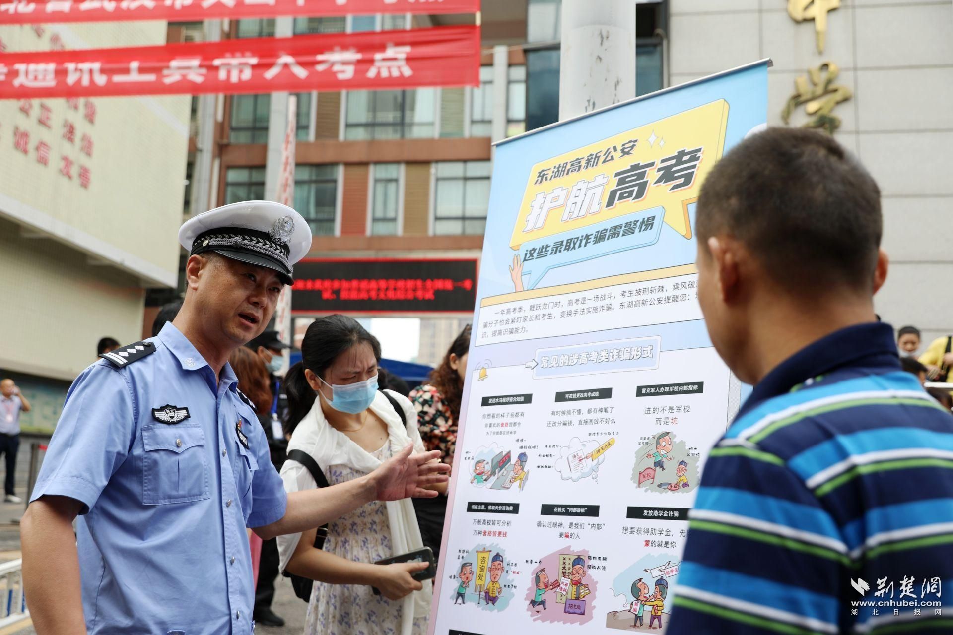 往年高考期间,一些不法分子散布涉考虚假信息、贩卖制造焦虑,甚至实施诈骗、诱导作弊,今年东湖高新公安认真梳理出相关套路,组织现场护考民警提醒家长及考生谨防涉高考类诈骗,不轻信所谓的内部指标、不明链接的查分短信,为家长守好的钱袋子,让考生轻装上阵,安心应考。