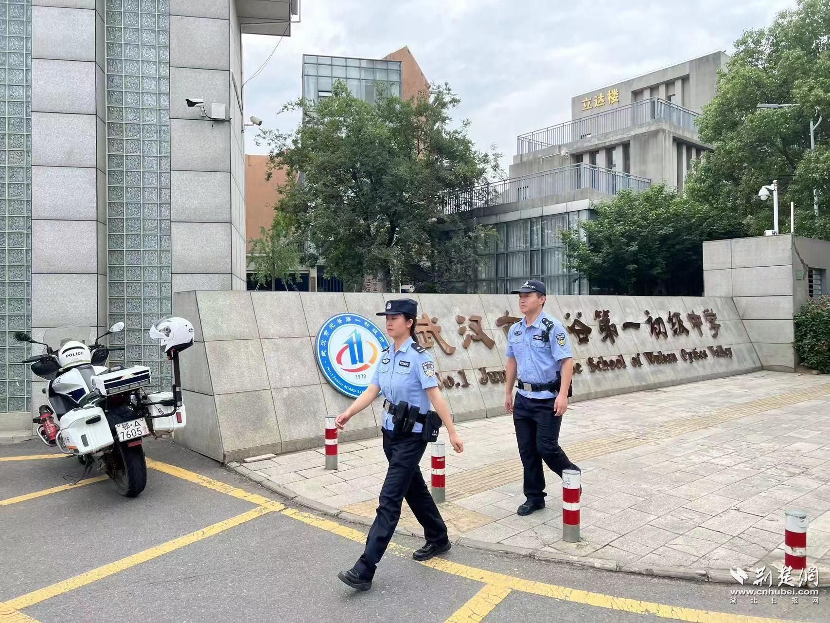 高考当日,东湖高新分局部署考点周边社区民警同步上勤,深入考点周边店面开展高考“静音”护考巡逻,叮嘱附近居民相关注意事项。