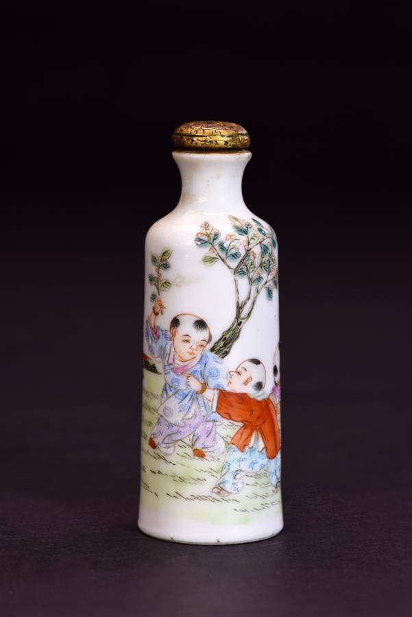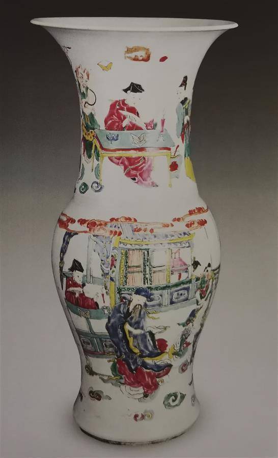 武汉博物馆藏一件清代粉彩折桂图鼻烟壶,呈爆竹形,撇口,平底内凹,铜鎏金錾花盖连象牙小勺。壶通体绘粉彩折桂图,几个童子在桂花树下嬉戏玩耍,其中两位小童高举桂枝,借喻夺冠登科。元代有诗云:“寒窗书剑十年苦,指望蟾宫折桂枝。”我国古代科举考试正值桂树开花时节,故用“折桂”,表达科举及第、高中状元的美好的祝愿。武汉博物馆藏清代雍正年间的粉彩人物故事图凤尾尊,瓷器撇口,长颈,溜肩,鼓腹,胫外撇,圈足。通体施白釉,以粉彩在颈、腹部绘“魁星点斗、独占鳌头”人物故事图。胎质洁白细腻,釉色纯净透明,画面层次分明。