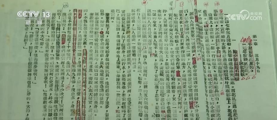 中国出版协会副理事长兼秘书长 王利明:《保卫延安》这个就不是作者的手稿,是编辑的校改稿。已经从作者亲笔写的手稿变成了铅字,这里还有大批的编辑仍然在进行编辑加工的痕迹。这本书已经整本排完了,前面只要改一个地方,后边的版要重排一次。我们当时有一个技巧,改掉一个字、增加一个字,如果改掉一个字,不能增加一个字,那就要加字的间距,尽量不推行倒版。