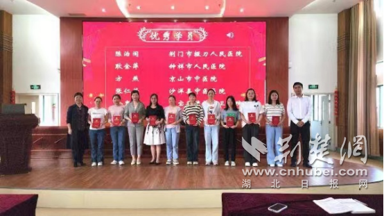 结业仪式上,有十名优秀学员受到表彰与颁奖,她们是:荆门市中心医院杨艳、荆门市人民医院张全莉、荆门市中医医院余海艳、荆门市妇幼保健院李凤蓉、荆门市康复医院李雪芹、荆门市掇刀人民医院陈治闽、钟祥市人民医院耿金萍、京山市中医院方燕、沙洋县中医医院张仁芳、东宝区牌楼镇卫生院金惠敏。