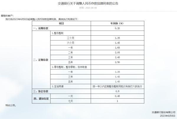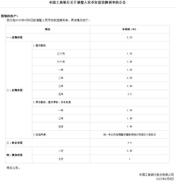 6月8日,工商银行、农业银行、建设银行、中国银行、交通银行、邮储银行六大国有银行共同下调存款挂牌利率。