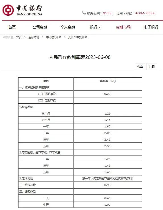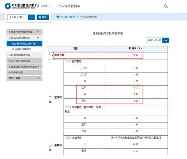 其中活期存款挂牌利率下调5个基点至0.2%;两年期定存下调10个基点至2.05%;三年期、五年期定存均下调15个基点,最新为2.45%、2.5%。目前六大行银行手机APP或官方网站均可查询到上述最新利率,部分大行官网尚未同步更新。