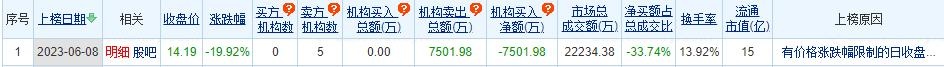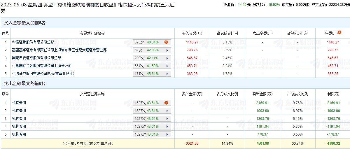 龙虎榜数据显示,益方生物卖出金额最大的前五名中,有5家机构专用席位。经统计,益方生物今日的机构席位净卖出金额为7501.98万元。