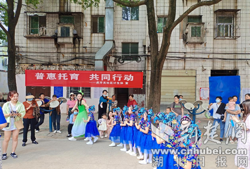 掇刀石街道联合辖区幼儿园开展“普惠托育,共同行动”三孩政策文艺汇演宣传活动,通过歌曲、舞蹈让幼儿尽情展示自己的才艺,同时对婴幼儿照护知识等进行科普,让家长也详细了解了托育既能提供科学系统照护服务,也能促进幼儿养成良好的生活习惯,更能帮助幼儿更好融入社会环境启发等优点。