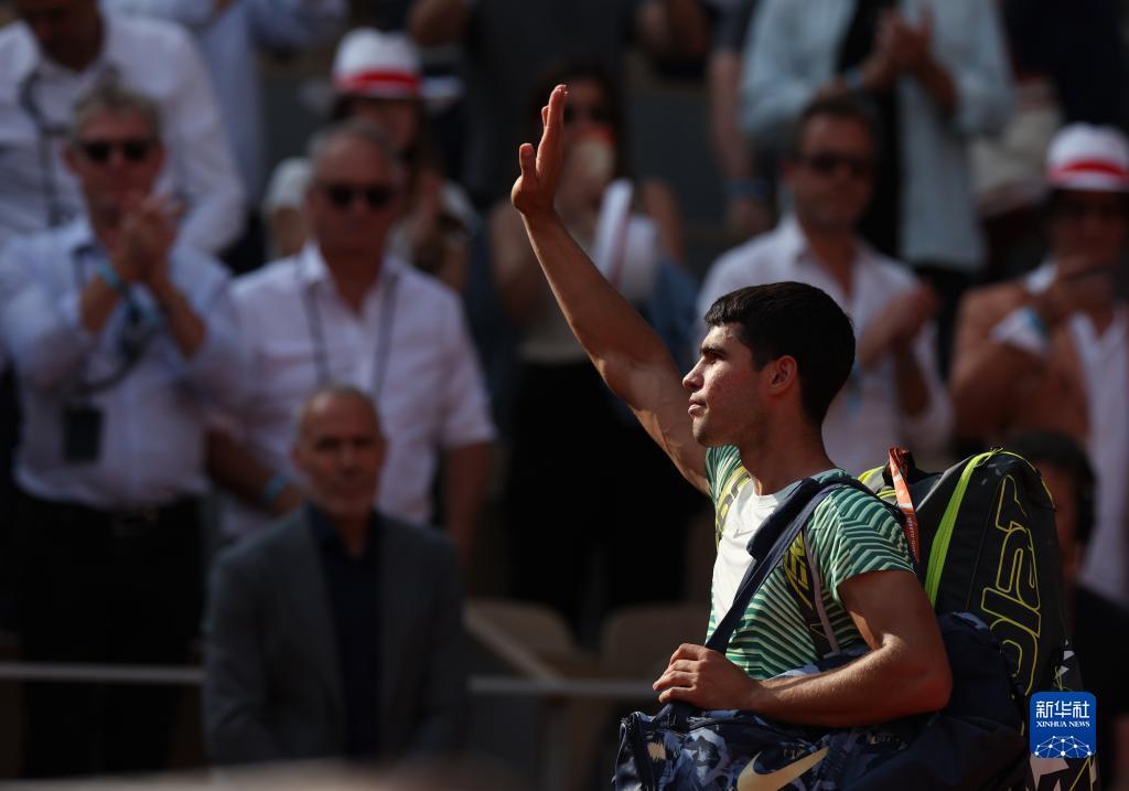 6月9日,阿尔卡拉斯赛后离场。新华社记者 高静 摄