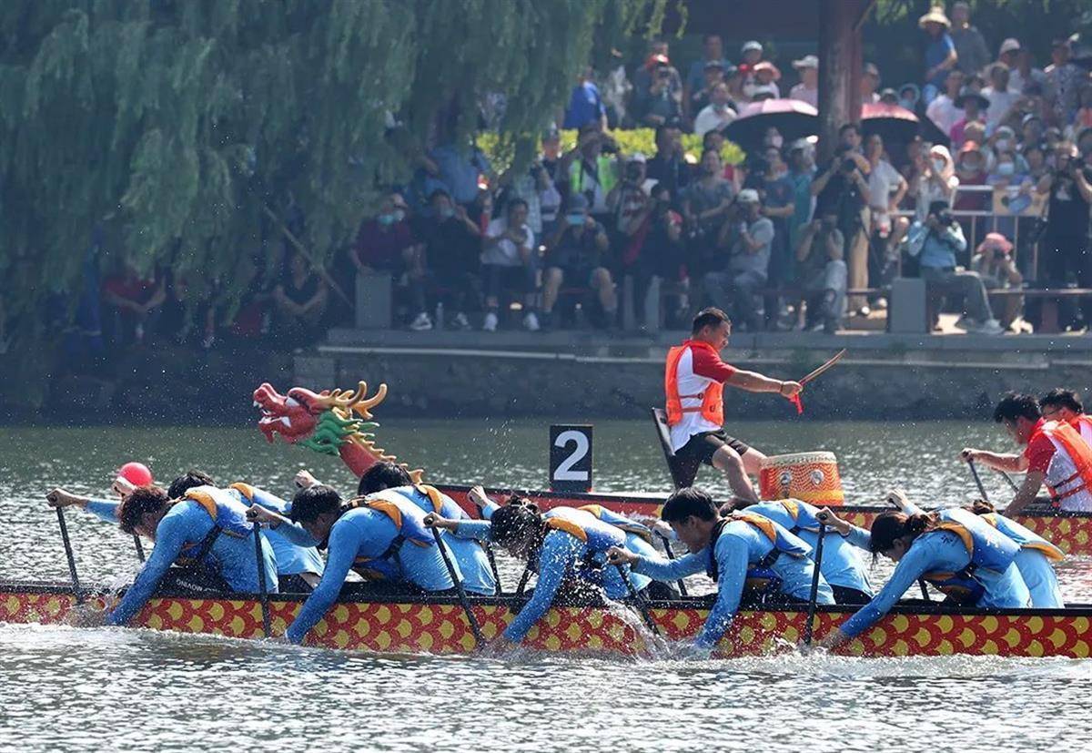 激情澎湃,分秒必争,参赛龙舟队给观众呈现了一场力与美的视觉盛宴。阳新县栗林龙舟队不负前来观赛的亲友所望,夺得混合组(12人龙舟)500米赛道第5名。队员张芬说,栗林龙舟世代传承,距今已有200多年的历史。2019年,栗林端午赛龙舟被列入省级非物质文化遗产保护名录。