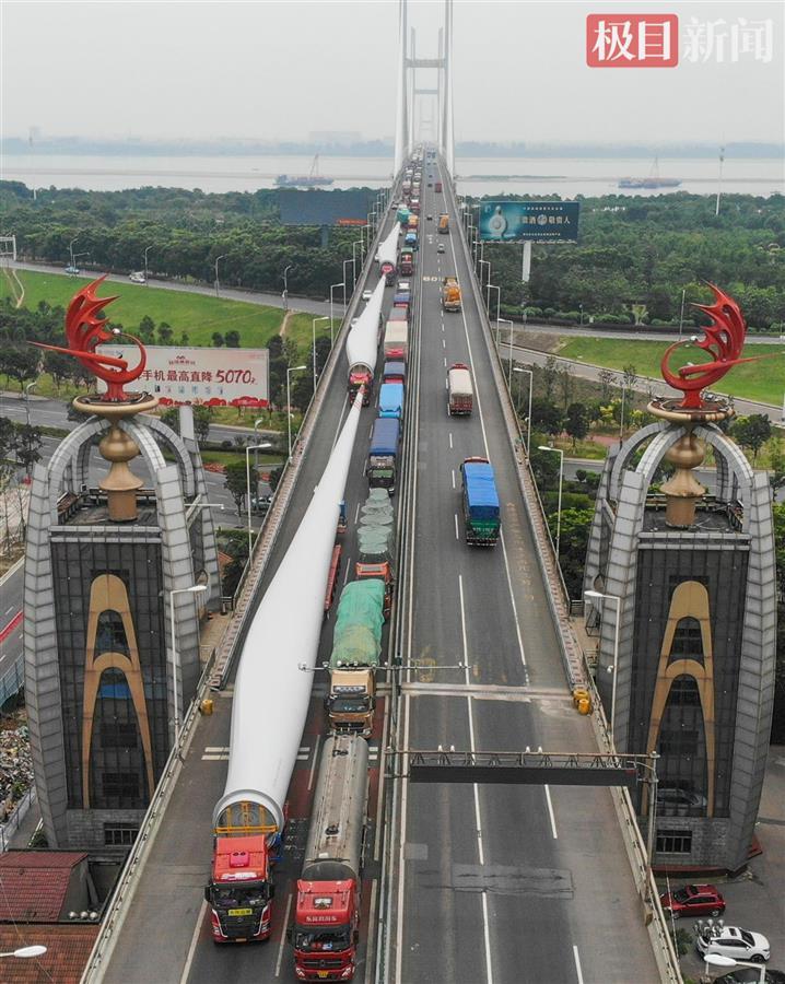 “桥北收费站附近有个事故,还需要1个多小时恢复畅通,事故比较复杂。”极目新闻记者12时30分许向湖北省高警总队三支队指挥中心了解到,因装载风力发电机大型叶片的运输车卡在长江大桥桥北的高速公路转弯路段,引发了严重堵车。