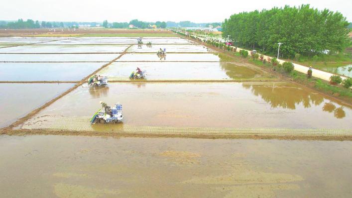 田店镇畅马村农民在高标准农田里种植优质糯稻。 (何博 摄)