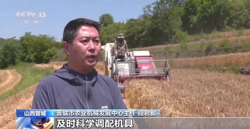 山西省晋城市农业机械发展中心主任 段君毅:我们根据小麦机收进度,及时科学调配机具,按照小麦成熟区由南向北,成熟一片,收获一片,确保全市小麦及时收获颗粒归仓。