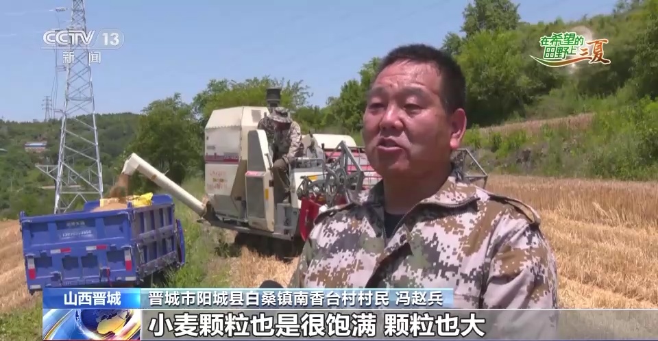 山西省晋城市阳城县白桑镇南香台村村民 冯赵兵:今年收成还可以,一亩地800多斤,小麦颗粒也是很饱满,颗粒也大,我们很满意。