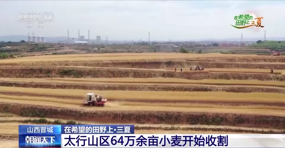 地处太行山南麓的山西晋城,眼下正值麦收时节,64万多亩小麦夏收工作全面展开,当地投入1200多台适合在山区作业的收割机,抓住晴好天气展开小麦抢收作业。
