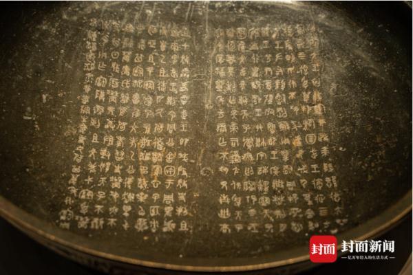 值得一提的是,来自宝鸡周原博物院的史墙盘也亮相这一单元,此文物为国家一级文物,更是中国首批禁止出境文物。能看到,史墙盘的盘形巨大,底部铸有铭文284字,铸于西周共王时期,是西周微氏家族中一位名叫墙的人为纪念其先祖而做。据介绍,墙盘所记述的周王政绩与司马迁的《史记·周本纪》中的内容非常吻合,关于微氏家族发展史部分的内容则并不曾见于已知的文献,填补了西周国史微子家族的一段空白,属于重要的历史资料。“这件史墙盘,它的铭文是非常规整的,有横有列,体现了周王室在鼎盛时期的礼制规范下,展现出的中国的文化向心力。”
