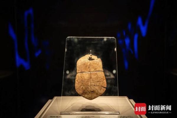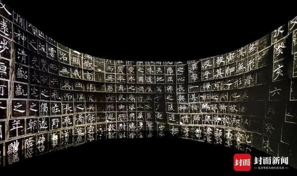 时代更迭,斗转星移,汉字的字形与结构、书写的介质与载体虽屡有变迁,却能跨越千年,延续至今,在历史的长河中依旧璀璨。于是,当观众踏入“汉字中国”的序厅里,在两块展示着星空长河的投影屏幕中,距今8000余年前的“贾湖刻符龟甲”静静被展示在展柜中,这是已知最古老的汉字源头,上面铭刻着国内迄今发现最早的刻画符号,似乎一眼就让人拉入了汉字的浩瀚而广阔的历史中。