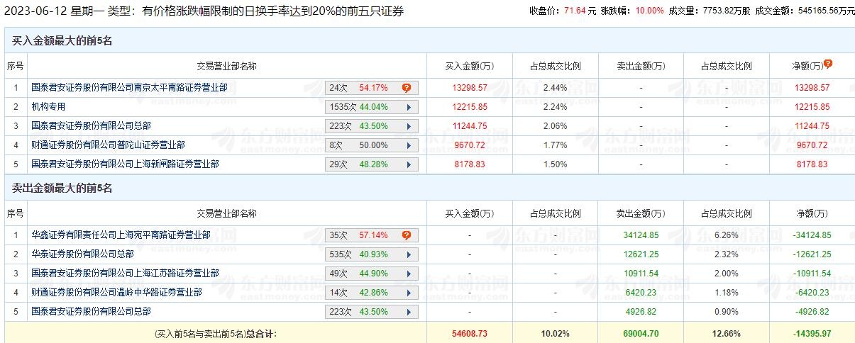 中国经济网北京6月12日讯 剑桥科技(603083.SH)股价今日涨停,截至收盘报71.64元,涨幅10.00%。