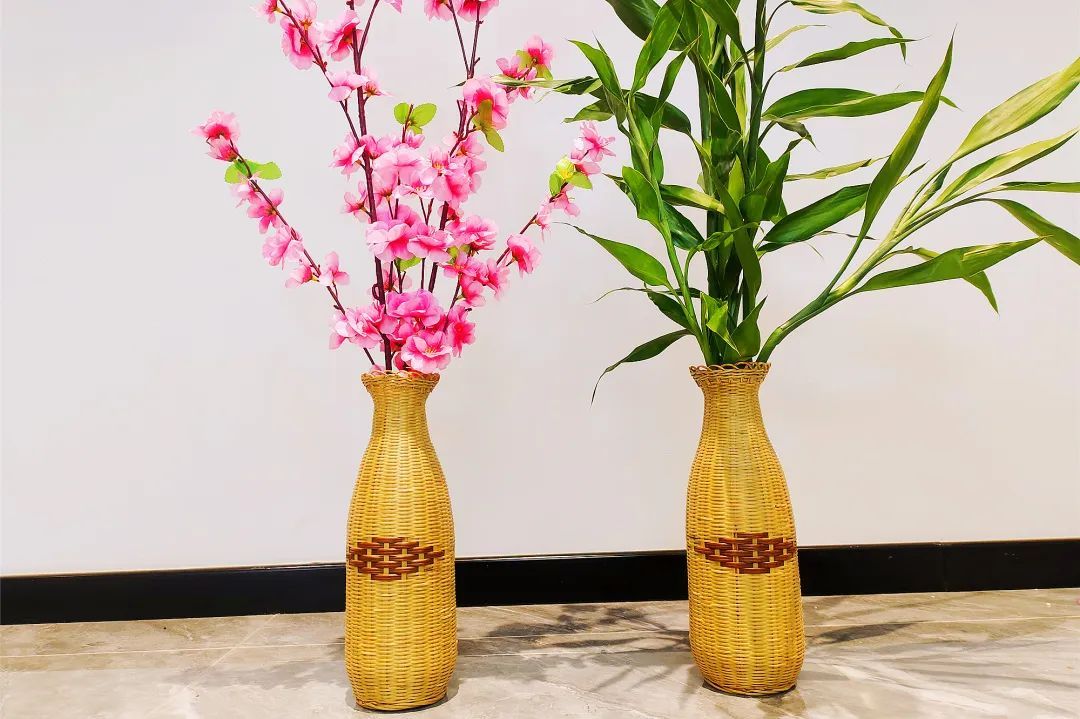 赵强制作的竹编花瓶十分精美