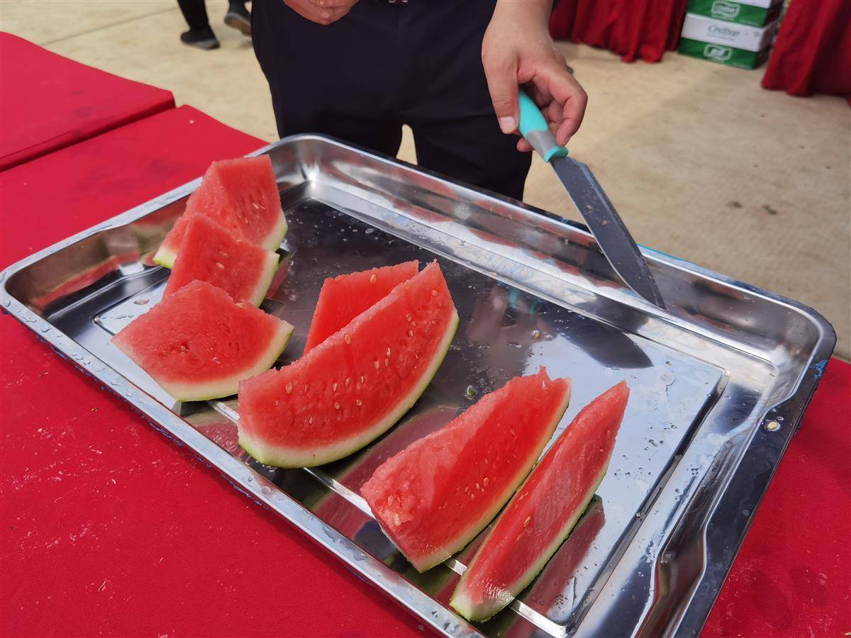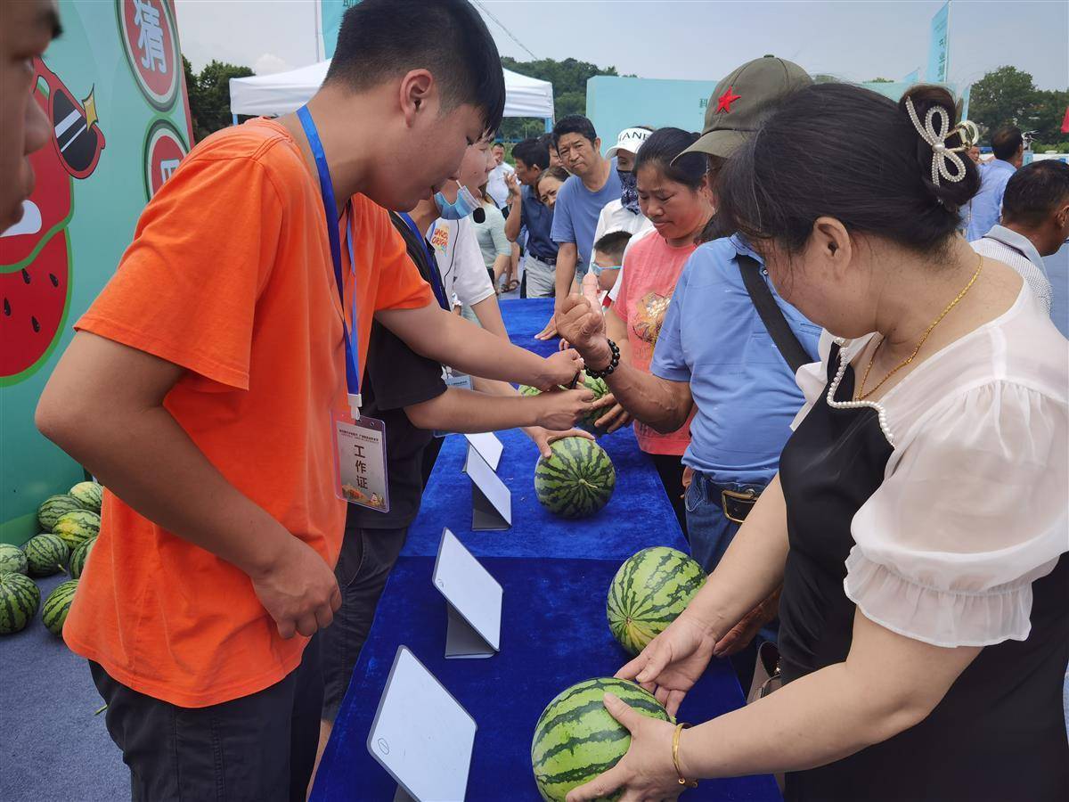 6月13日上午,“土地堂·西瓜王”品牌推介暨江夏区首届西瓜节活动在乌龙泉街四化村西甜瓜示范基地举行。开幕式上,武汉市农科院与江夏区政府签订区院共建乡村振兴战略合作框架协议,江夏区农业农村局主要负责人现场推介“土地堂·西瓜王”产业项目。现场,还有西甜瓜科普知识介绍、新品种展示、吃西瓜接力比赛、西瓜圈圈赛、猜西瓜、网红打卡点等互动体验项目,好不热闹。