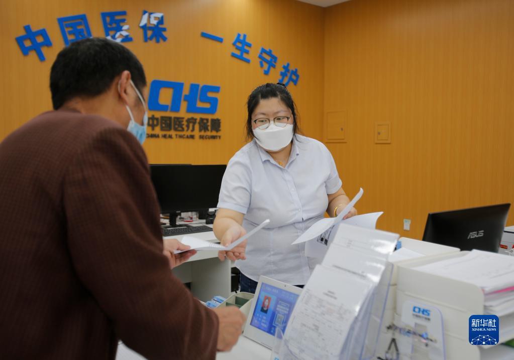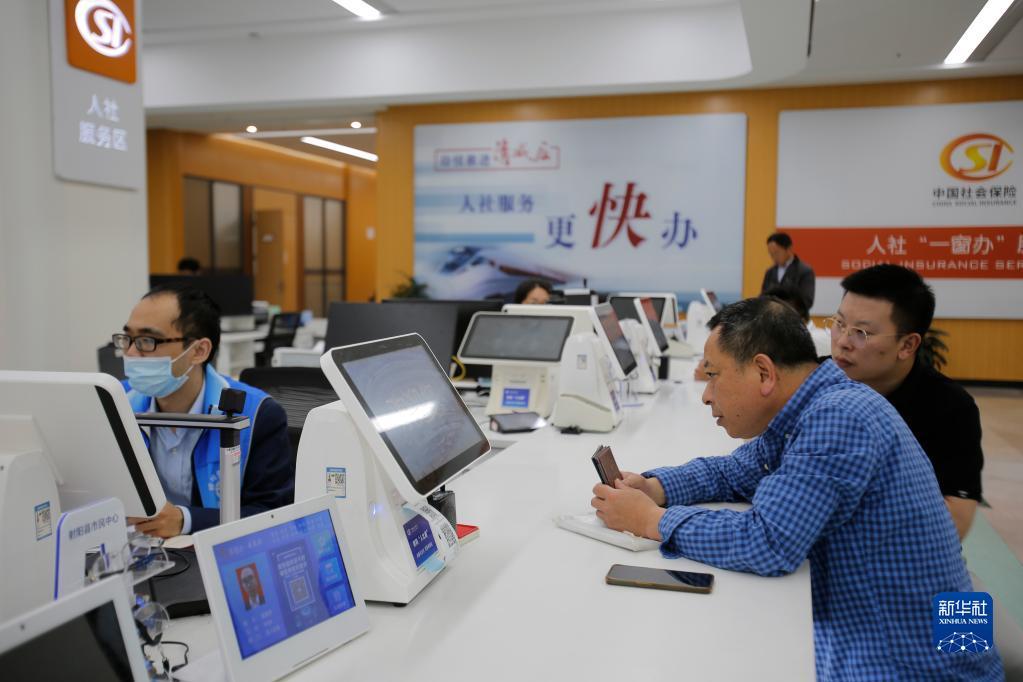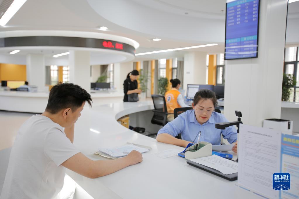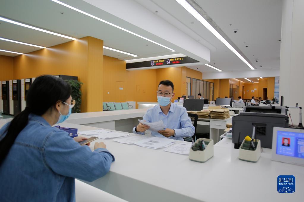 6月13日,在射阳县市民中心,工作人员为市民办理业务。