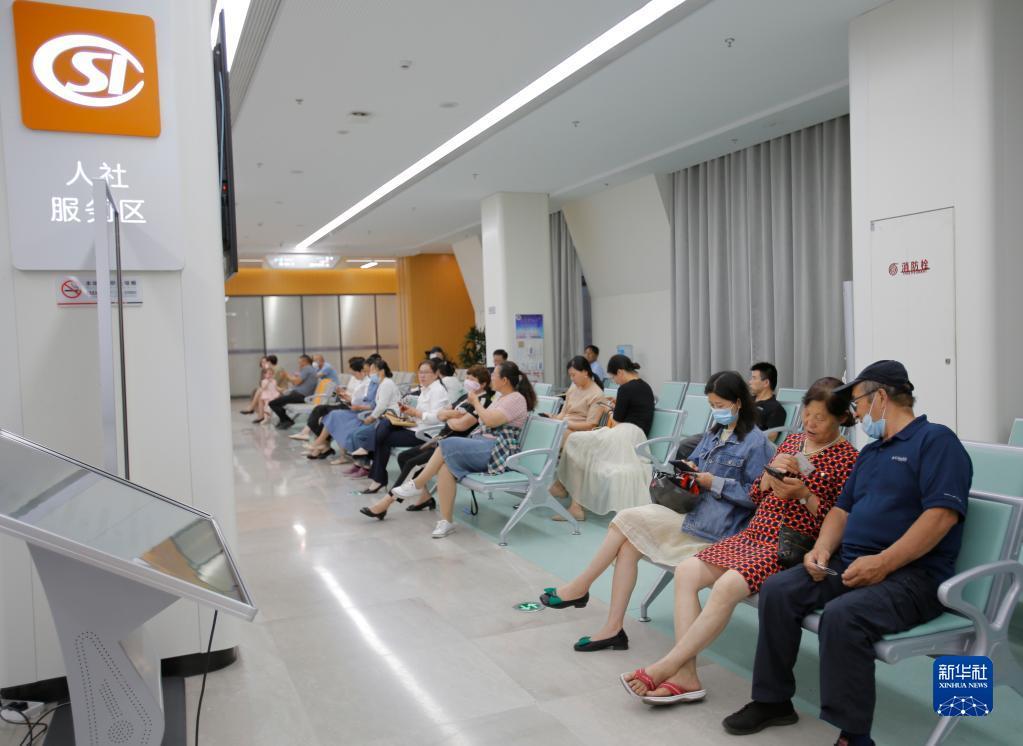 6月13日,在射阳县市民中心,市民在等候办理业务。