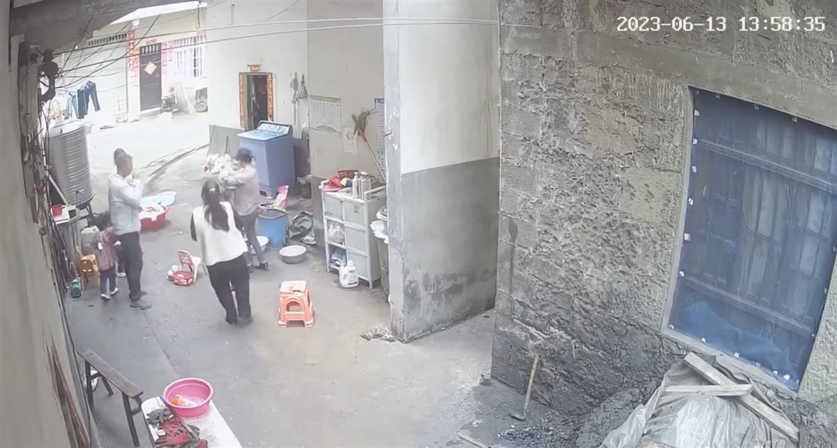 多段监控视频显示,6月13日上午10时26分许,伴随“嘭”的一声响,房屋发生较大幅度的晃动,整个过程持续一两秒钟。另一段监控视频时间为13日下午1时58分的画面显示,几名大人带着几名小孩正坐在屋外闲聊,突然再次出现上述声响,房屋发生一两秒的晃动,大家吓得立马站起,有孩子甚至被吓哭。