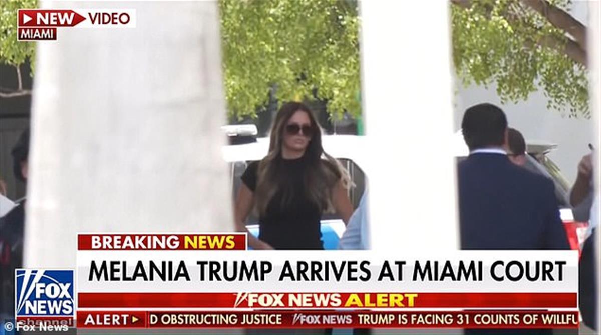 “我们收到了一些视频,现在来播放,(从画面可以看到)梅拉尼娅刚刚抵达法院。”福克斯新闻主持人约翰·罗伯茨在节目中这样说道。与此同时,电视画面下方的字幕上还出现了“梅拉尼娅·特朗普抵达迈阿密法院”的字样。