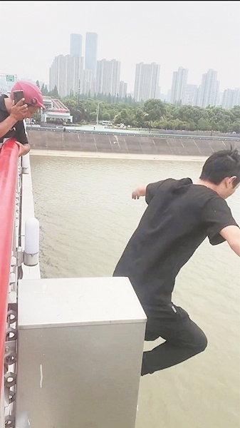 彭清林:桥面离水面有十几米高,可不是开玩笑的!翻过护栏,站在桥边才知道有这么高。其实,当时我心里有点退缩,也在犹豫,因为不知道跳下去会怎么样。但当时情况危急,容不得我再多想什么,就直接跳了下去。我跳到江中后,呛了几口水感觉很难受。江水很深,双脚根本踩不到底,那一瞬间还挺让人恐惧的。