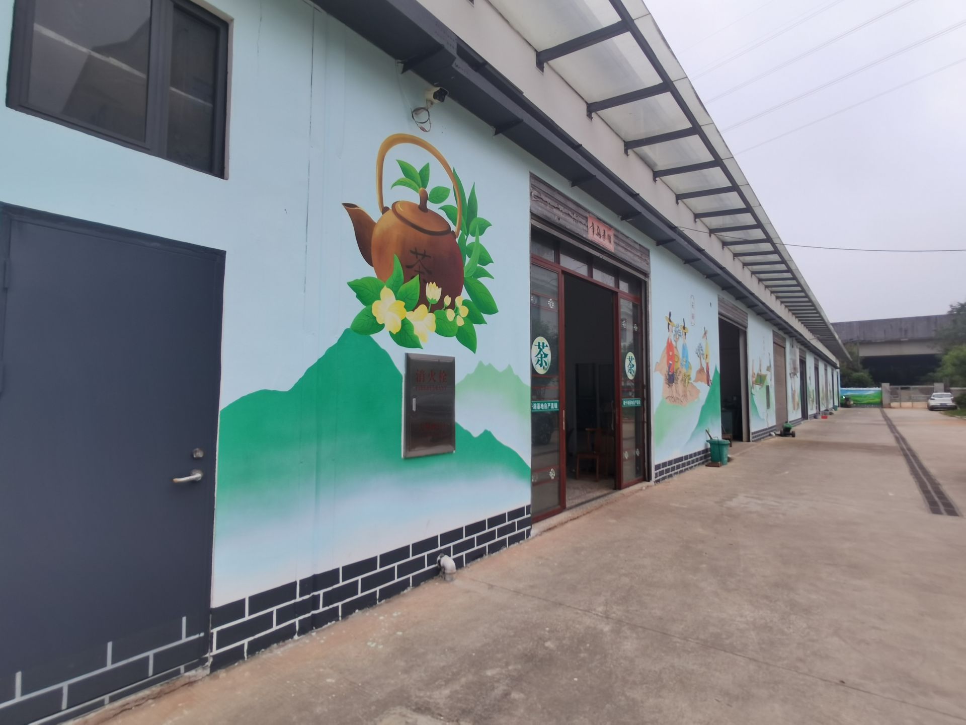 “你看,我们的市场现在不仅有颜值,还有内涵。”陈恢云热情地带着记者参观他们的“ 新家园”,入口处“茶叶大市场”高架框门楼建设显眼,绿化带内草坪和树木郁郁葱葱,立面墙体上采茶、卖茶、制茶等茶叶生产场景与厂房融为一体,营造出“房在景中、景在房上”的视觉美景 ,增添了茶乡的诗情画意和乡土文化气息……改造后的“市场”俨然成为新的网红“打卡地”。