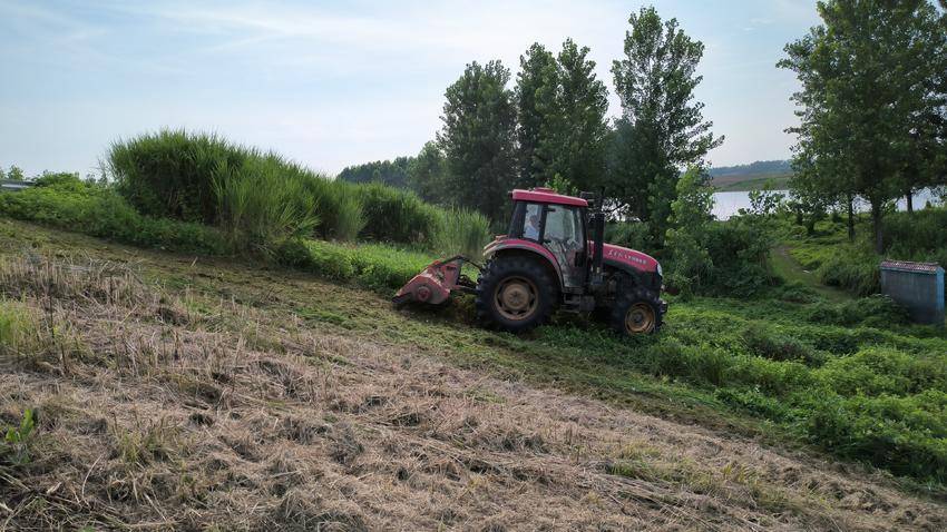 “目前正值主汛期,也是汉北河堤身草木生长迅猛期。为确保安全度汛,我们自6月4日起,计划工期10天,采取机械、喷药、人工等方法,对辖区内10.25公里汉北河堤身开展清障除杂工作。截至目前,已出动割草机4台,人工42个台班等。”云梦县水利和湖泊局河道堤防管理总段汉北分段段长胡传伟介绍道。