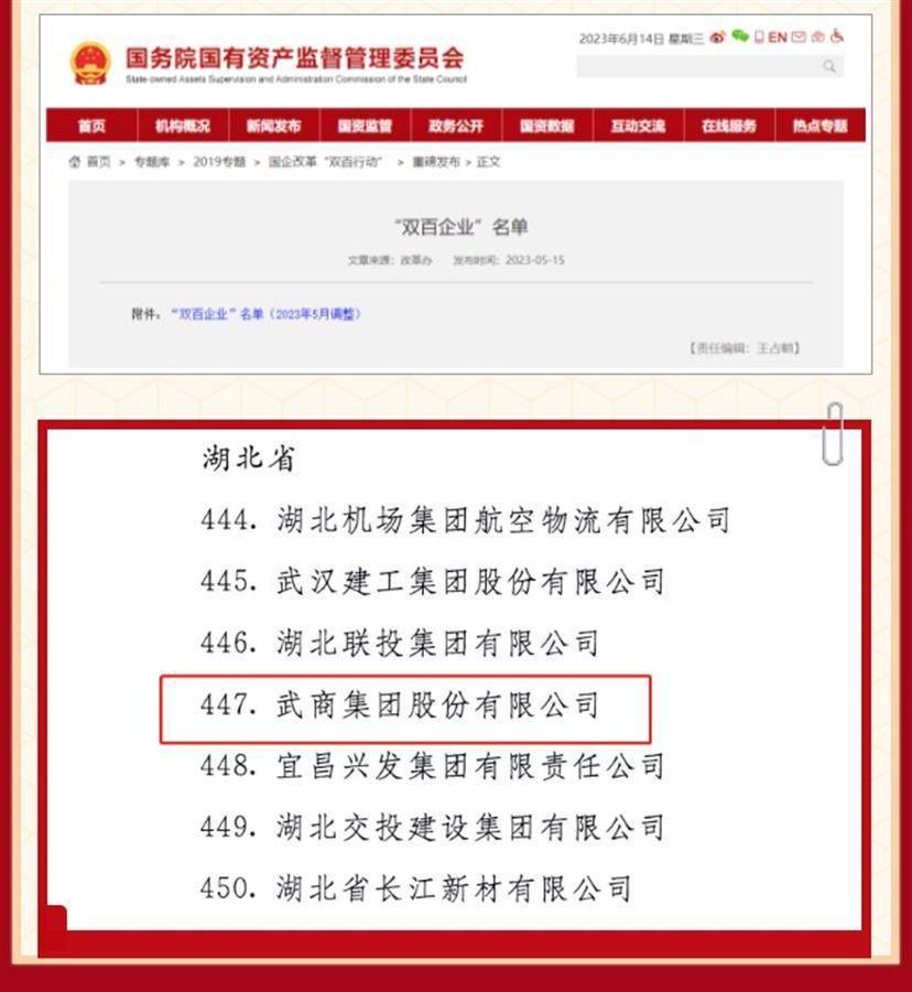 湖北日报讯(记者肖丽琼)近期,国务院国资委网站公布了最新国企改革“双百企业”名单,武商集团股份有限公司入选,成为武汉市两家国企改革“双百行动”企业之一,也是湖北省唯一获此殊荣的商贸企业。