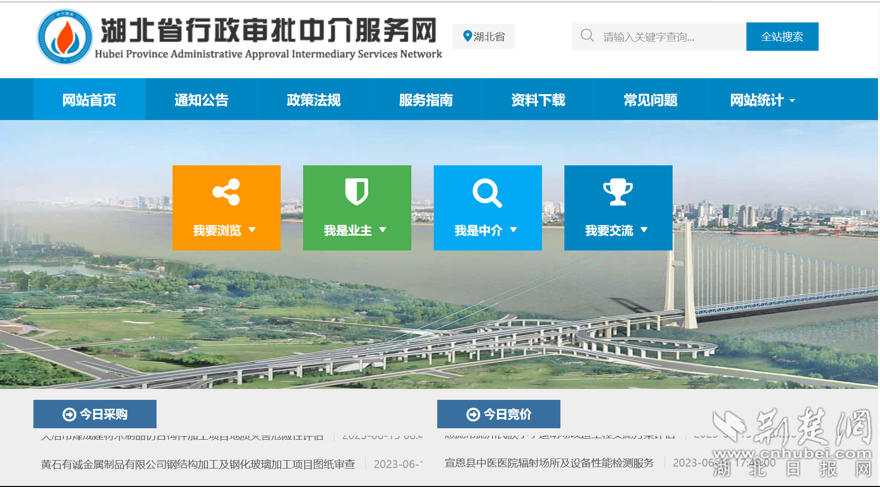 据了解,湖北省行政审批中介服务平台是一个集综合监管部门、中介机构与服务对象三方互动的网络应用平台,具有“展示形象、规范服务、在线交易、全程监管”四大功能,可以让全省各类中介机构“零门槛、零限制”入驻平台,业主通过平台寻找优质高效的中介机构,降低了企业制度性成本,促进中介服务的公平、公正、公开。