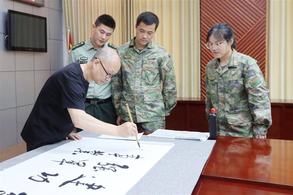 “翰墨颂双拥,军民述深情。”在部队学习室,几位老书法家挥毫泼墨,创作了二十余副对联,表达对部队官兵的崇高敬意。