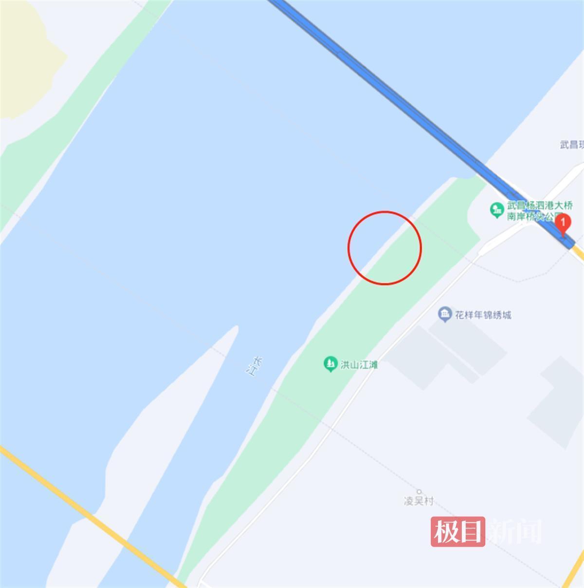 根据视频文字描述,此现象发生在6月14日,地点为杨泗港大桥附近。6月15日,由于没有具体地点的描述,经记者反复比对视频画面,并在周边寻找,最终确定该地点为杨泗港大桥下方的武金堤大道上的洪山江滩(约为下图中红色圆圈位置)。