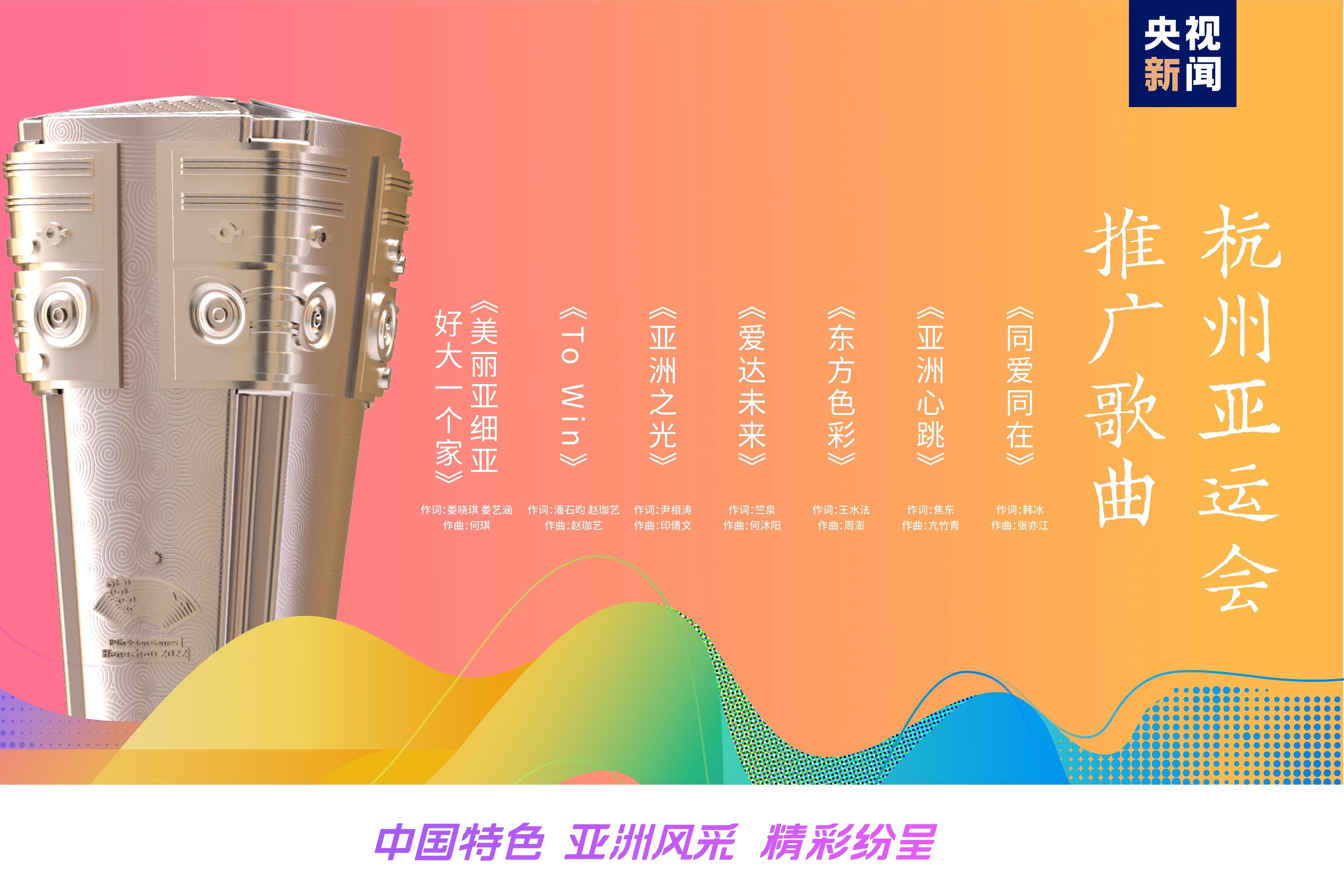 歌曲《美丽亚细亚 好大一个家》歌唱美丽亚细亚山水相连,号召大家一路携手共同创造更美的亚细亚。