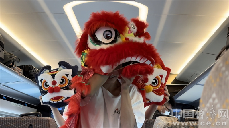 “粤”升湾区阔,潮涌看中国。乘务员在车厢中开展了精彩的醒狮表演、《中国梦》功夫扇舞蹈、三句半《“粤升湾区阔,潮涌看中国”—广铁助力湾区发展》、手语操《悦彩服务 “粤”动人心》服务礼仪展示+小合唱《我们的时代》,以青春活力的表演生动诠释着广东文化,在整个表演过程中,旅客们可以近距离感受到中国传统文化的底蕴和魅力。