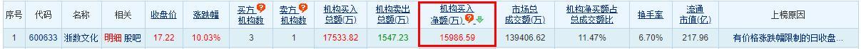 龙虎榜数据显示,浙数文化买入金额最大的前五名中,有3家机构专用席位;卖出金额最大的前五名中,有1家机构专用席位。经统计,浙数文化的机构席位今日净买入金额为15986.59万元。