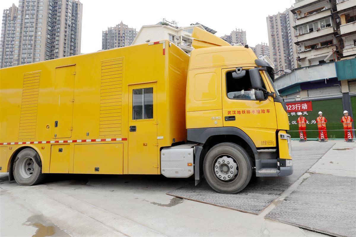 10分钟后,4支应急抢险队到达现场。利用“龙吸水”大流量排水抢险车、防汛应急排水单元车对隧道内积水进行抽排,并对涌水点实施沙袋堆码加固。