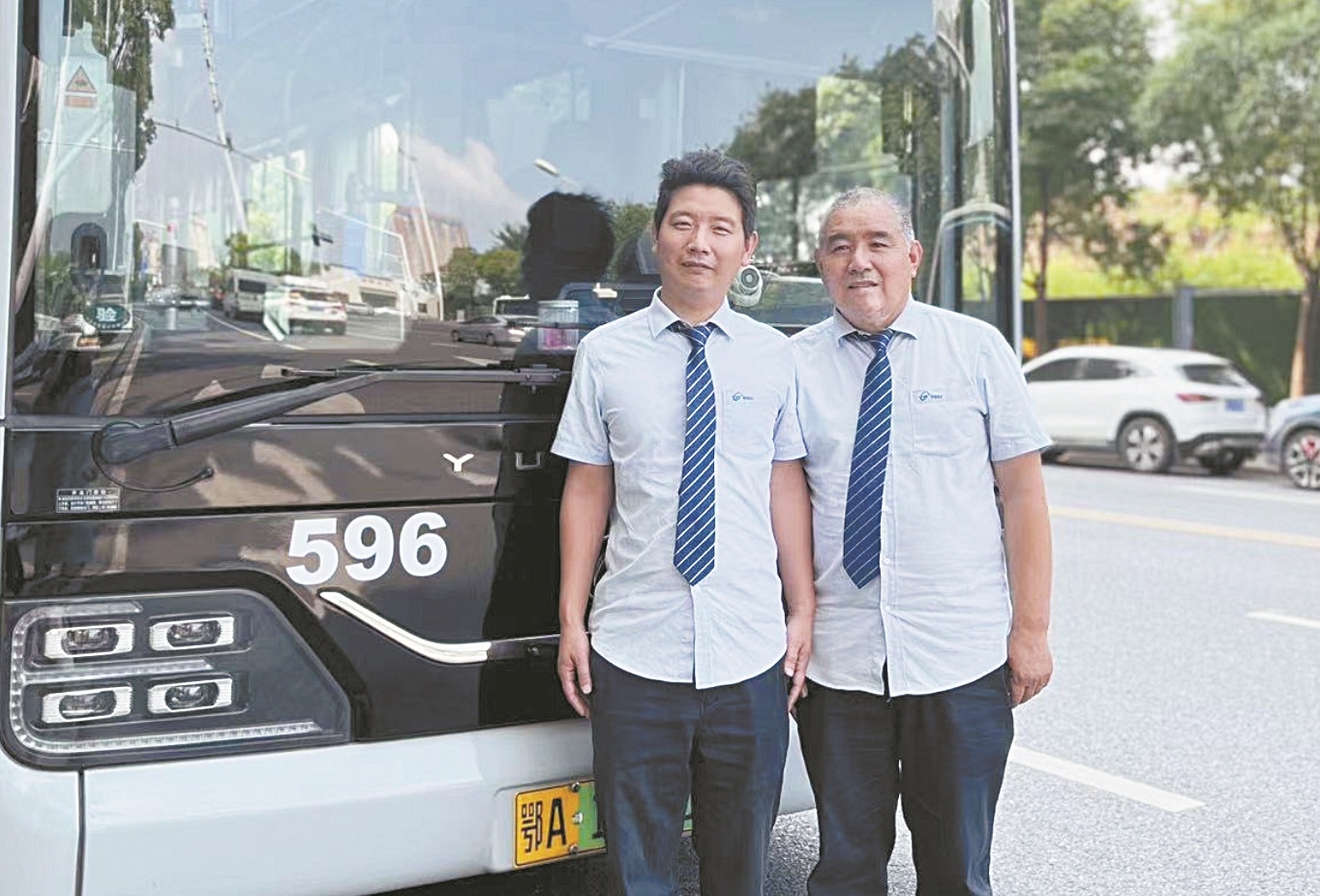 58岁的董家勇是武汉公交596路驾驶员,40岁的董正强是其儿子,他俩是同事,在这条线路上,父子两人已经共事了15年。