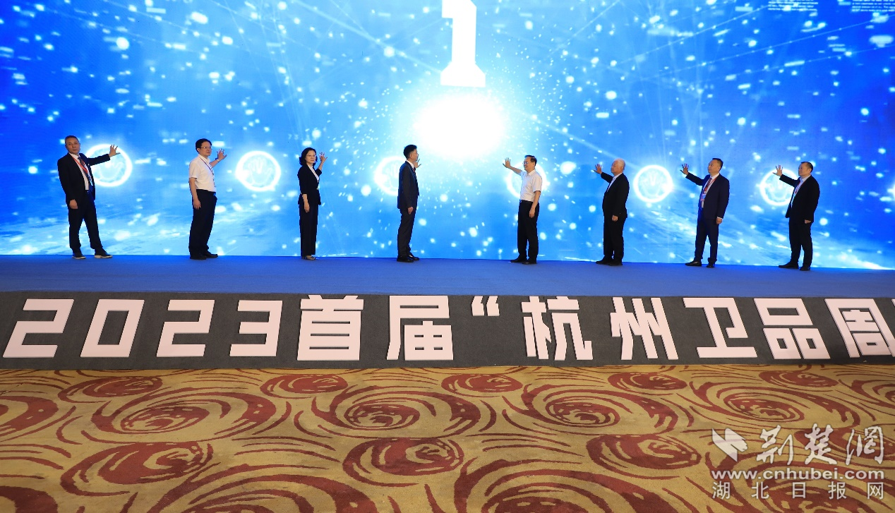 嘉宾上台共同开启2023 首届“杭州卫品周”。通讯员 供图