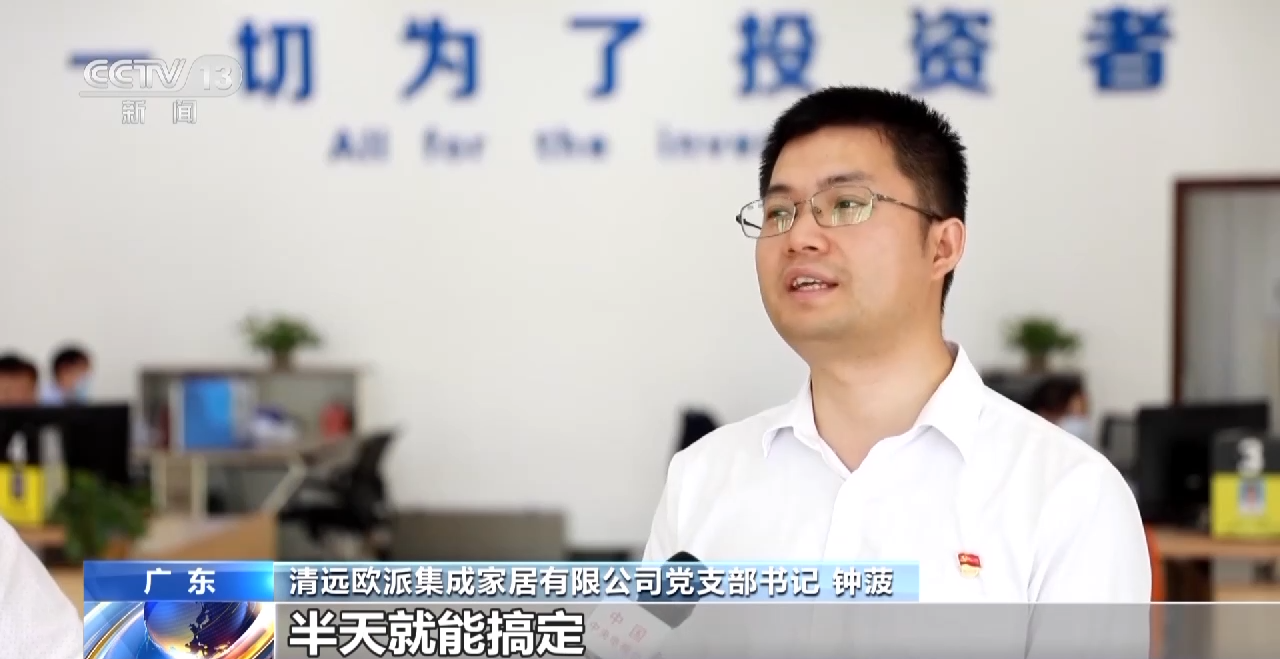 清远欧派集成家居有限公司党支部书记 钟菠:我们企业开办的手续,半天就搞定了。不敢想象这里是清远,感觉享受到了广州的服务。
