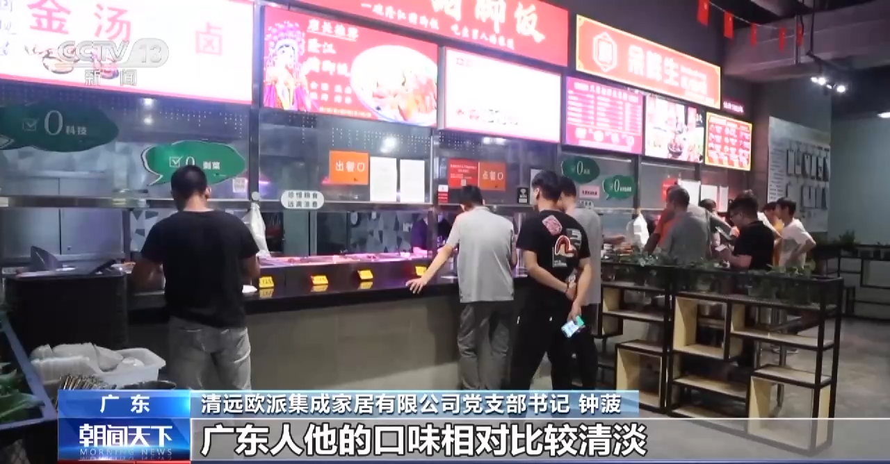 清远欧派集成家居有限公司党支部书记 钟菠:这边就是我们东生活区的食堂,满足我们员工众口难调的情况。广东人的口味相对比较清淡,这边的窗口就是来满足相对比较辣的需求。